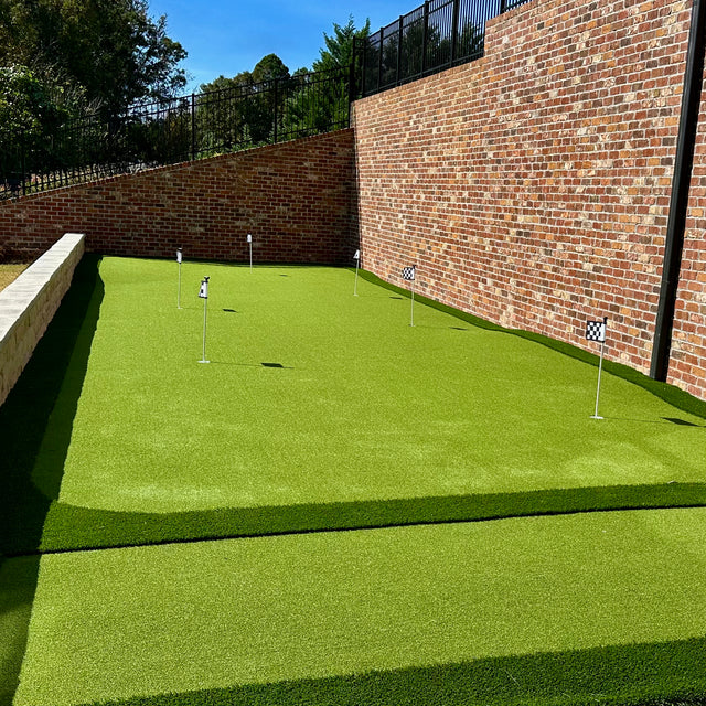 What began as a backyard project has transformed into a purpose-built, 1,000+ square-foot synthetic turf training facility, carved directly into Conner’s land. Every contour was designed with intention, not flat but shaped with true undulations, breaks, tiers, and slopes that replicate the feel of being out on the course.
